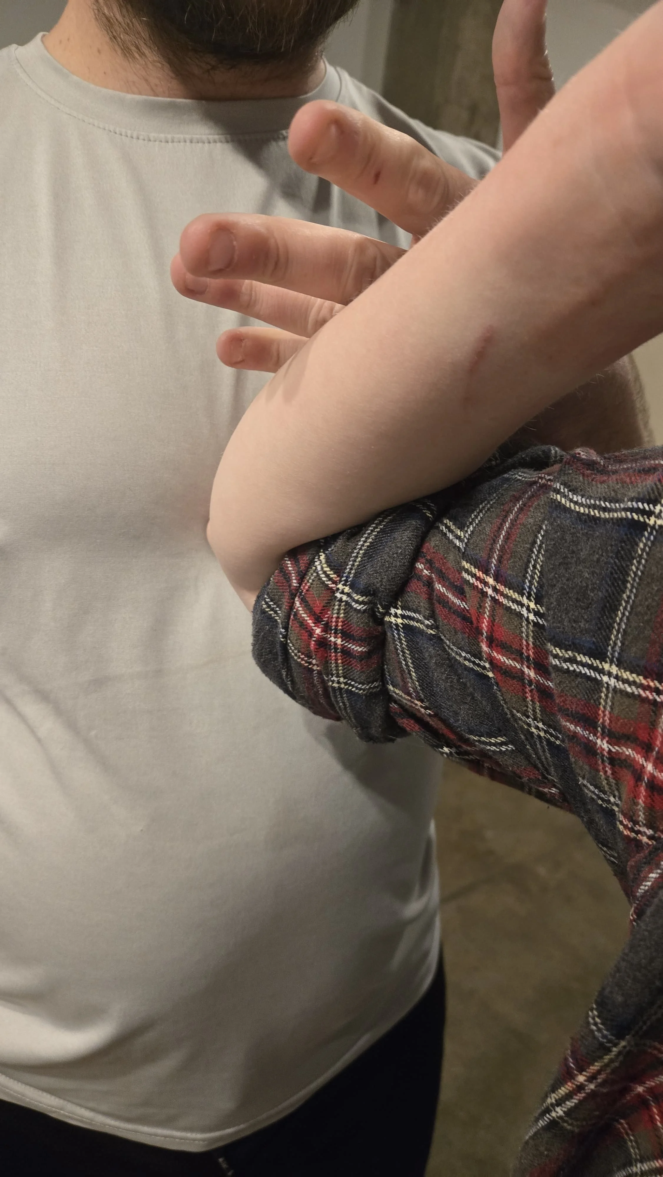 This is the easier version of breaking from a grab. It's usually not the first one we teach, partly because it's easy. If it's easier for a defender to do something, it's also easier for them to hurt their training partner! In order for a student to learn this one, they should first demonstrate that they have good control over their body, as well as knowledge of when it's appropriate to use this level of force against someone.